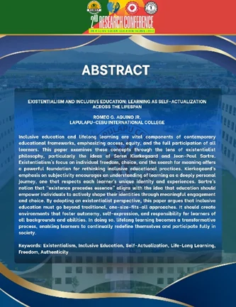 Here, Aquino reframes inclusion, not as a bureaucratic requirement, but as a philosophical imperative grounded in human dignity. Drawing from Soren Kierkegaard and Jean-Paul Sartre, he presents education as a process of self-creation. If, as Sartre argues, “existence precedes essence,” then learners are not defined by labels, backgrounds, or limitations; they are open possibilities. Aquino challenges traditional, mechanistic teaching by emphasizing freedom, choice, and responsibility.